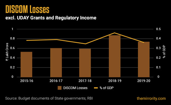 The power sector accounts for much of the financial burden of state governments in India. Many state governments provide subsidies, artificially reducing the cost of electricity for the farm sector and a section of the household sector. State governments also periodically infuse capital into power distribution companies (DISCOMs) to enable them to undertake productive investments and compensate them for their losses.